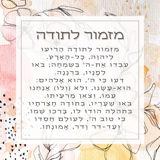 מזמור לתודה על זכוכית – הדפסה אומנותית בגדלים שונים