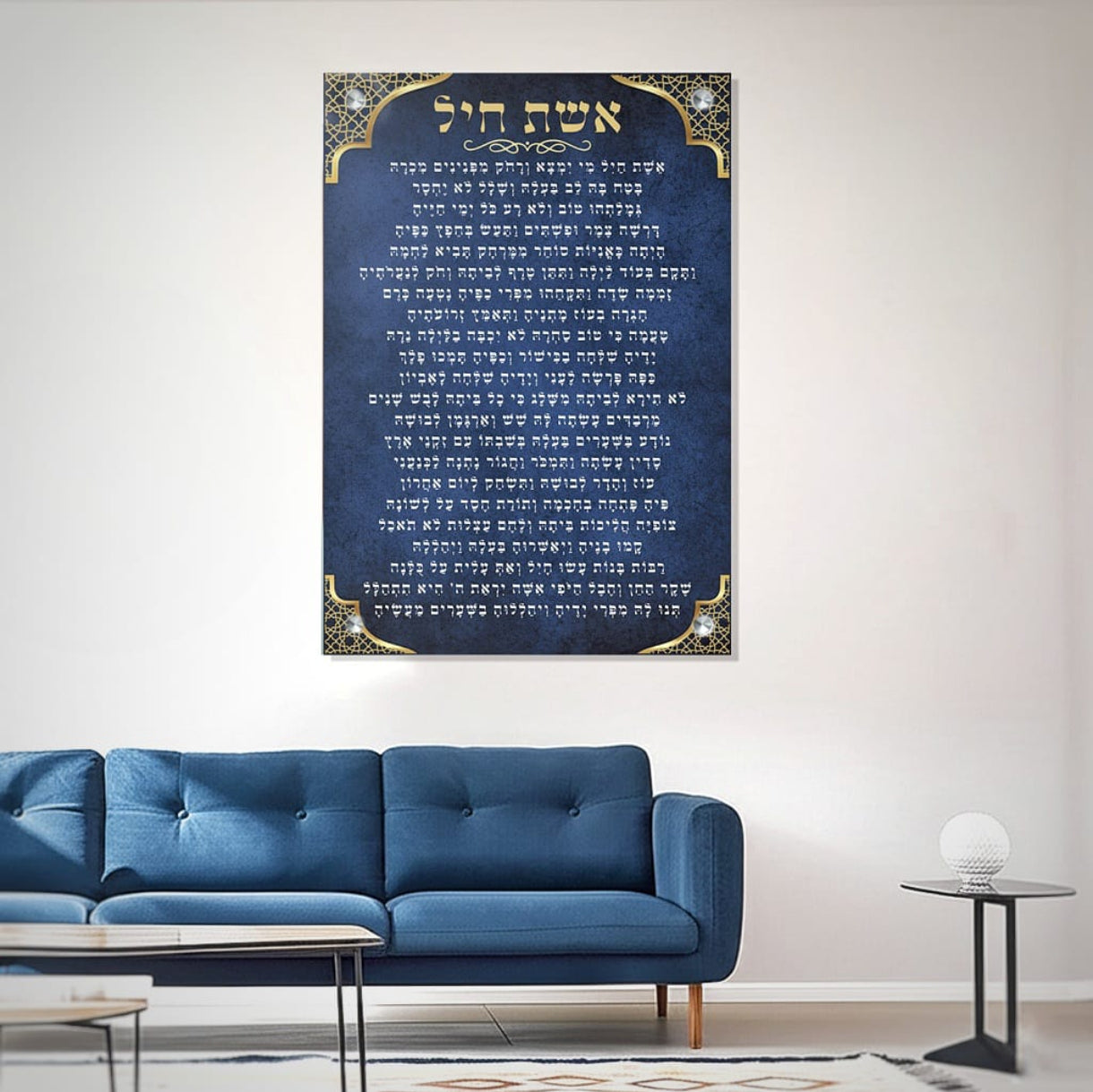 הפכו את הקיר שלכם למקור של השראה והערכה עם יצירת אמנות מרשימה של "אשת חיל" על זכוכית מחוסמת. היצירה, המשלבת טקסט מקודש עם עיצוב מודרני ויוקרתי, מהווה תוספת מרגשת לכל חלל. ההדפסה על גבי זכוכית מחוסמת מבטיחה עמידות לאורך שנים וגימור מבריק שמוסיף עומק וממד לתמונה.