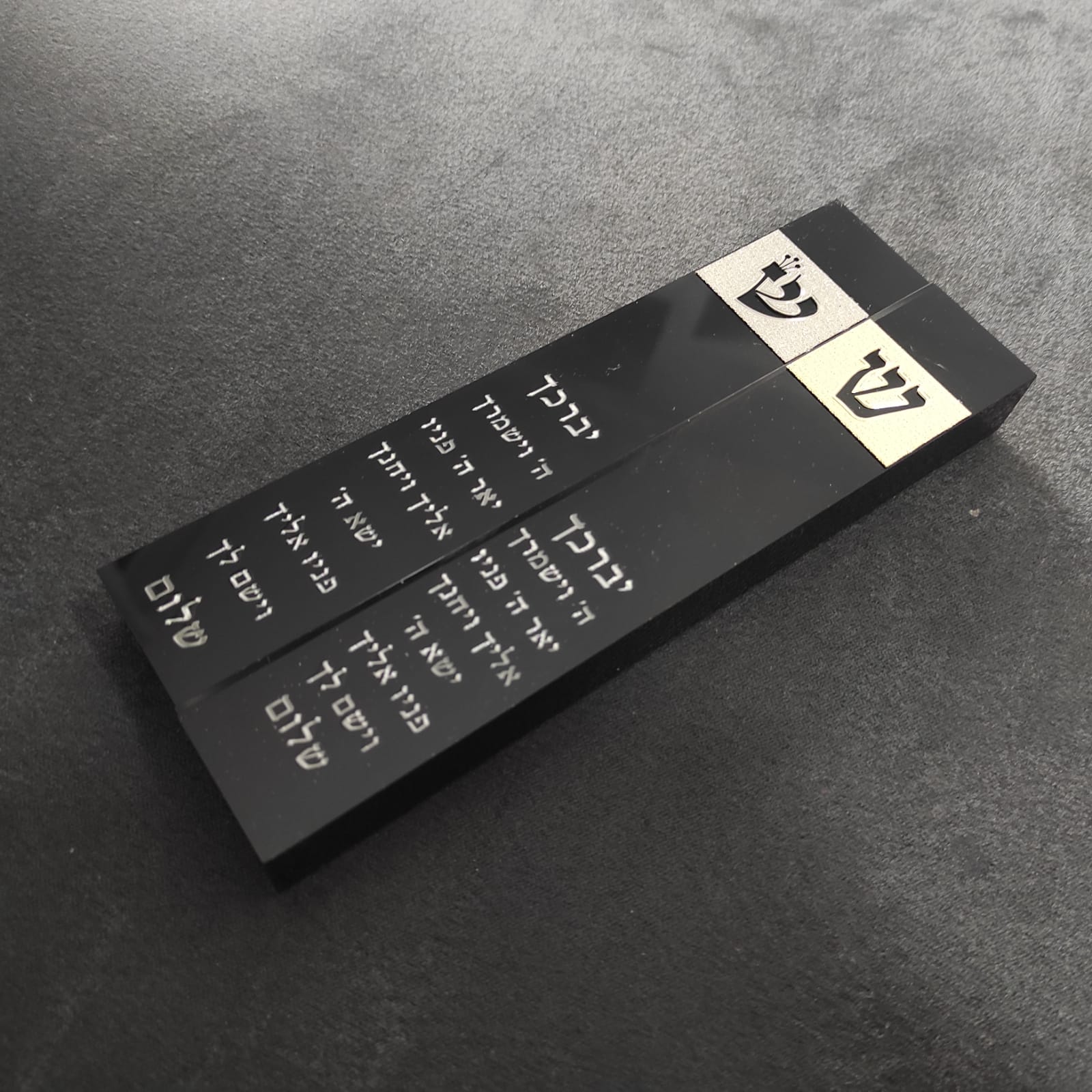 בית מזוזה זכוכית אקריליק בעיצוב אומנותי בשילוב ציפוי זהב או כסוף בחריטה אישית