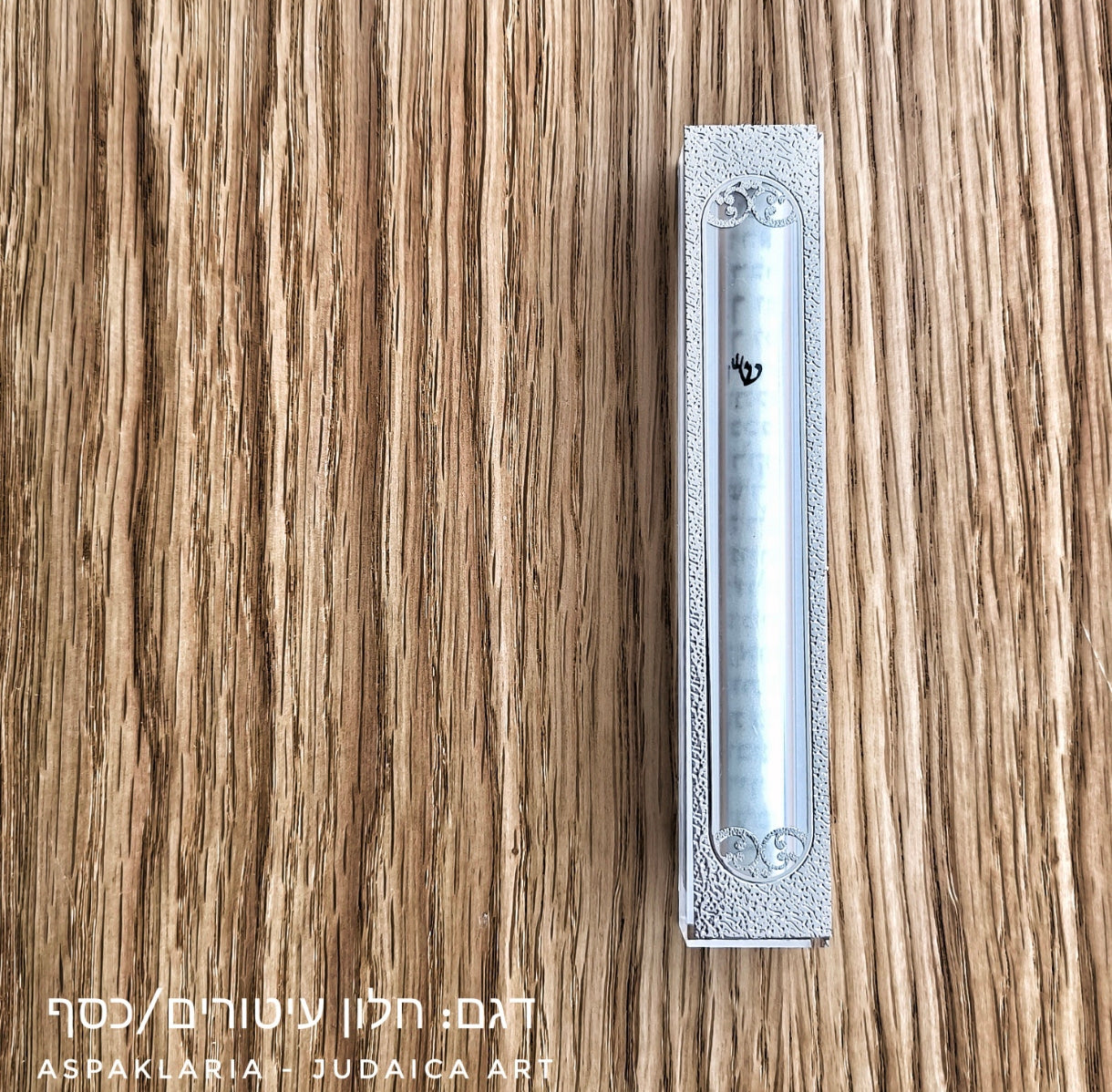 בית מזוזה זכוכית אקריליק בעיצוב אומנותי, שילוב ציפוי כסוף