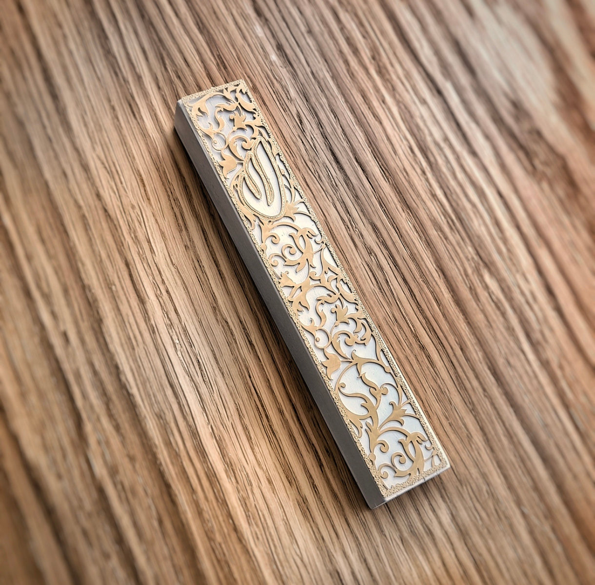 בית מזוזה זכוכית אקריליק בעיצוב אומנותי, שילוב זהב טהור