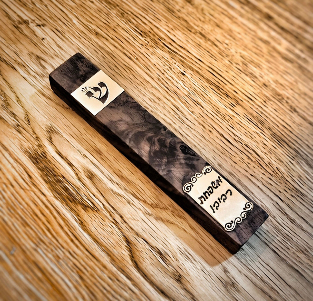 בית מזוזה עץ מלא שילוב ש זהב ושם משפחה