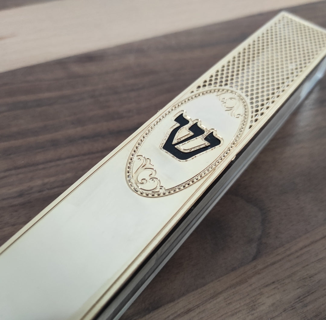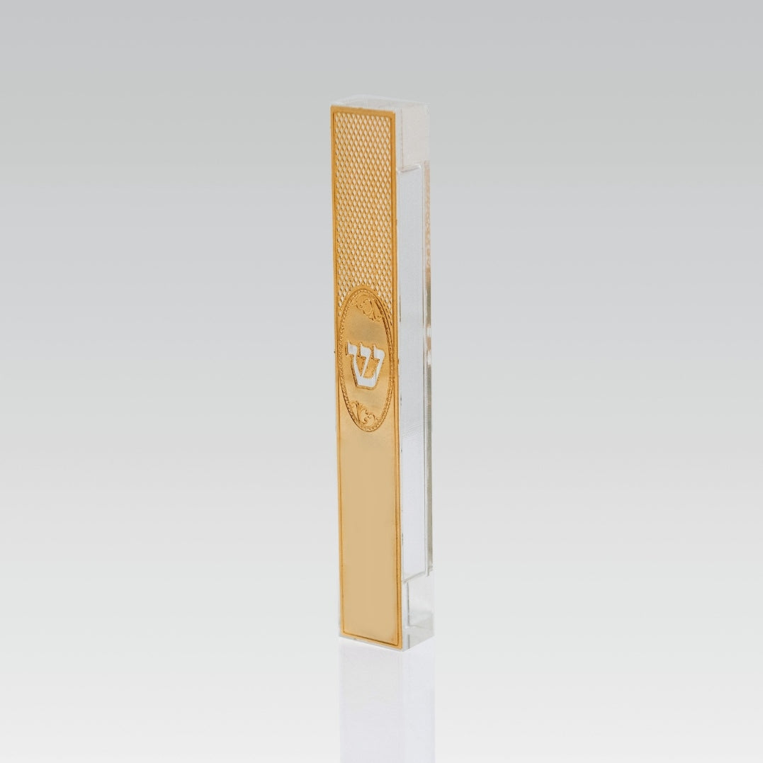 בית מזוזה זכוכית אקריליק בעיצוב אומנותי, שילוב זהב טהור