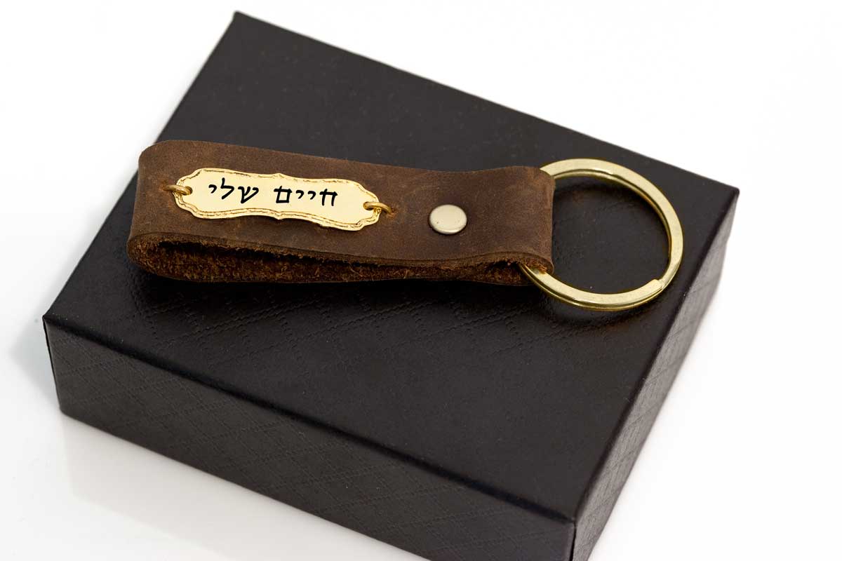 מחזיק מפתחות חריטה בשילוב עור