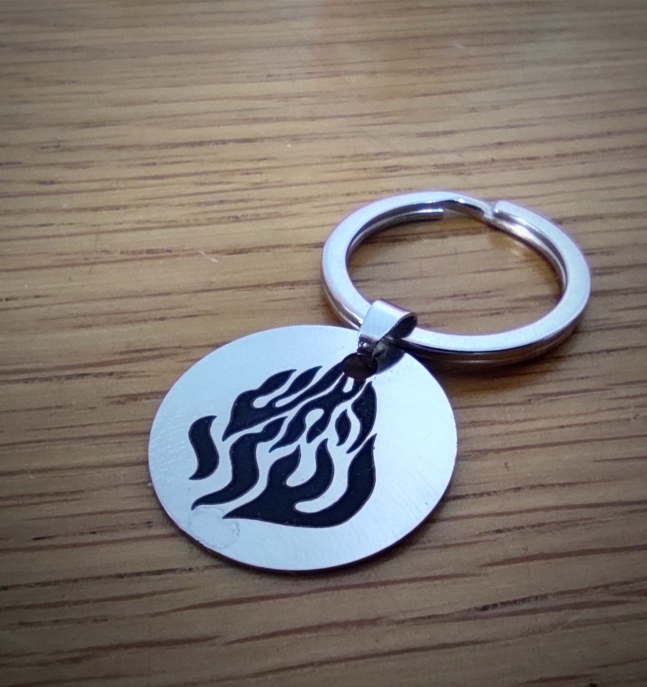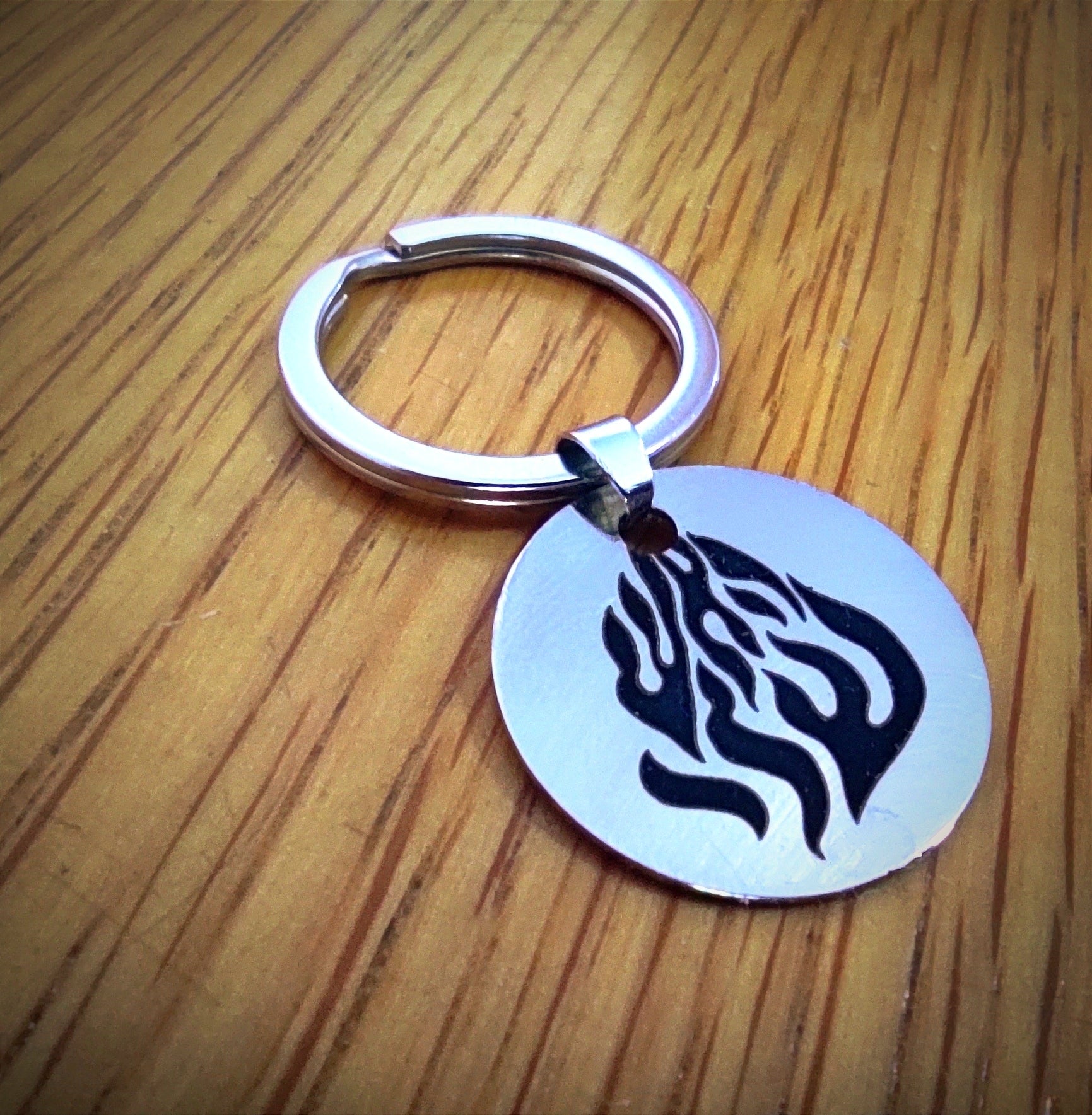 מחזיק מפתחות כסוף עם חריטה אישית אומנותית האש שלי