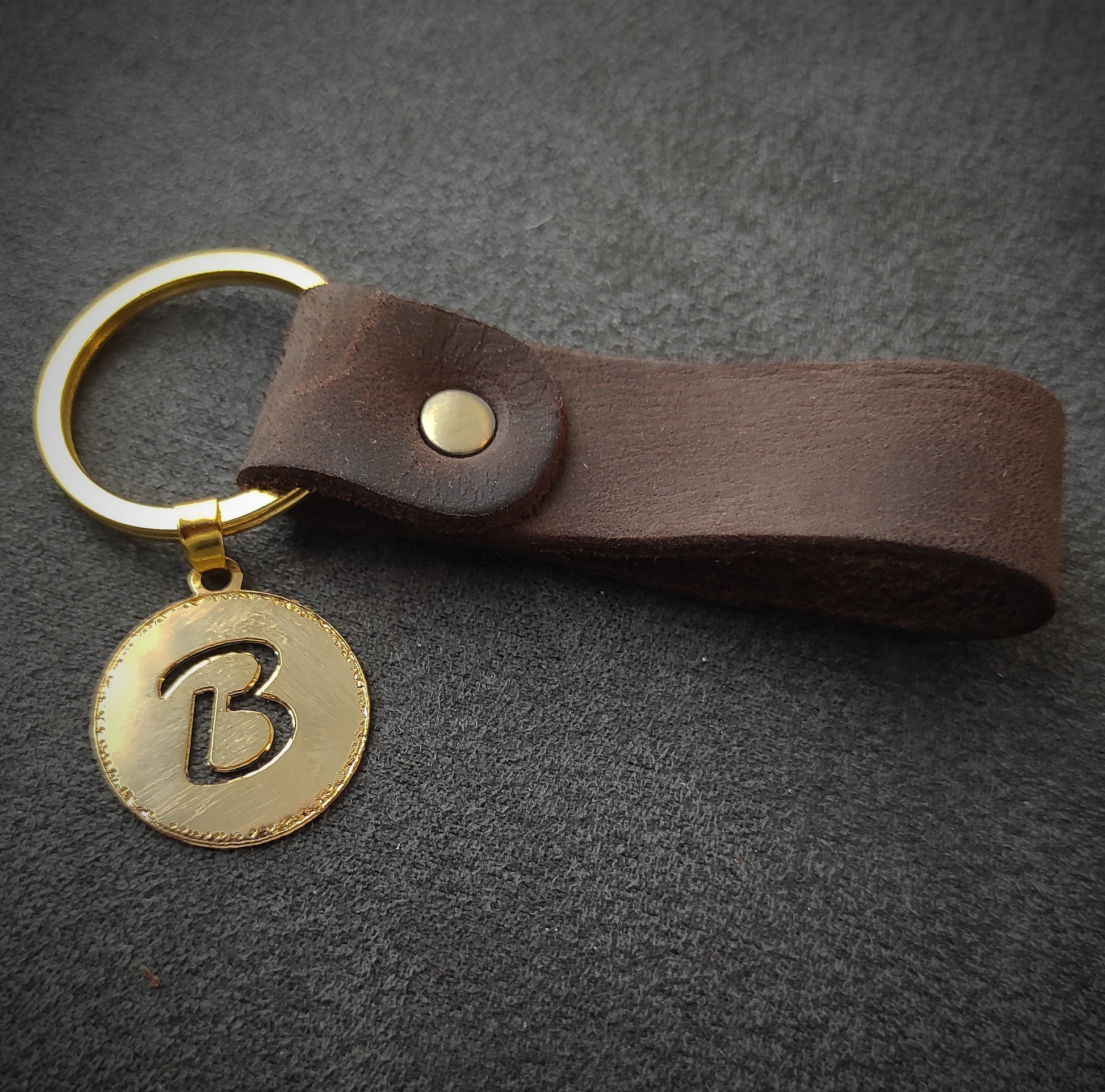 מחזיק מפתחות מעוצב מעור ותליון אות מצופה זהב
