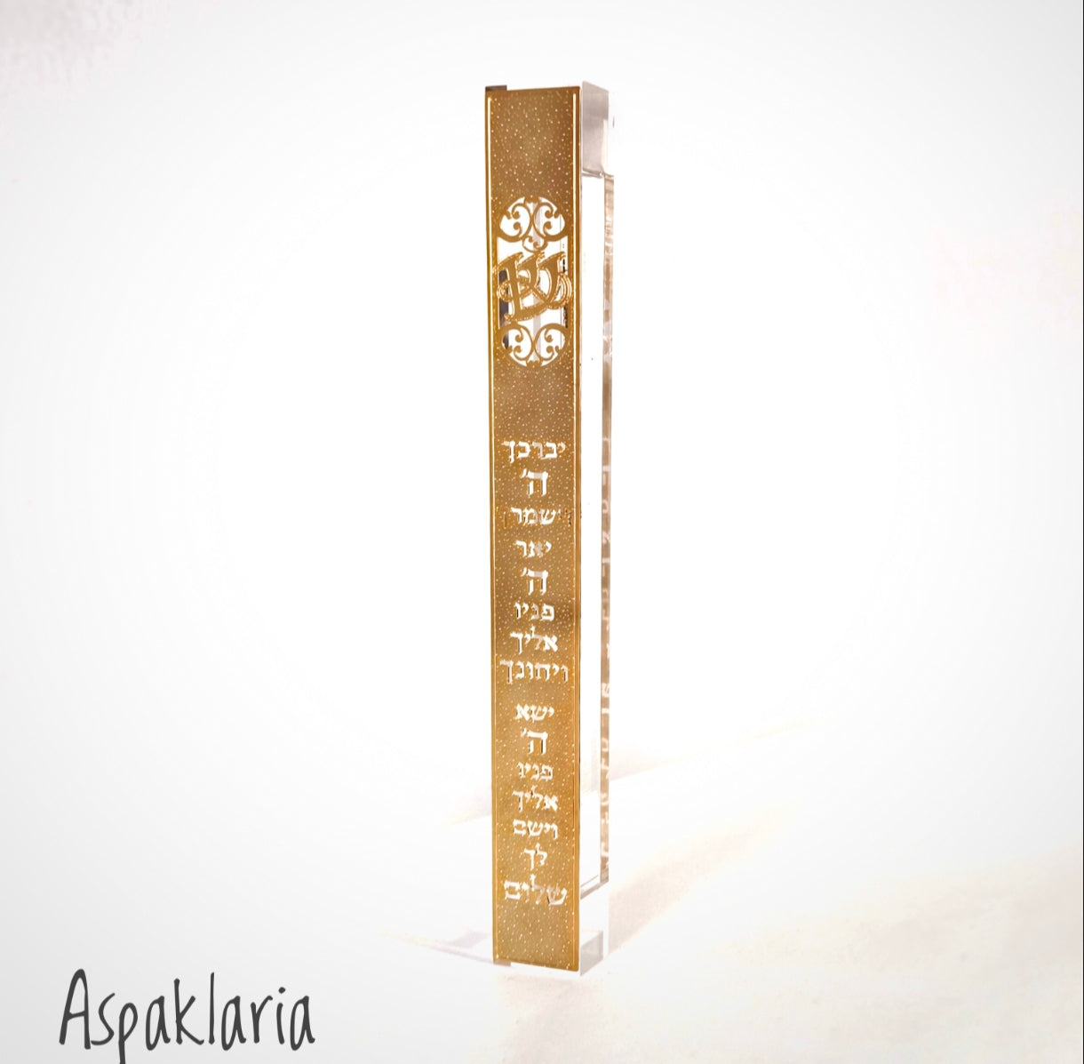 עיצוב ייחודי ומרגש: גולת הכותרת של בית המזוזה היא שילוב מרהיב של אמנות ברכת כהנים, המוטבעת בעדינות ובדיוק בזהב נוצץ. העיצוב המוקפד של ברכת כהנים, המעניק מראה עשיר ומואר, הופך כל פתח לדלת קודש. הזהב המבריק משתלב בהרמוניה מושלמת עם השקיפות הקריסטלית, ויוצר אפקט חזותי עוצר נשימה המושך את העין ומעורר השראה.
