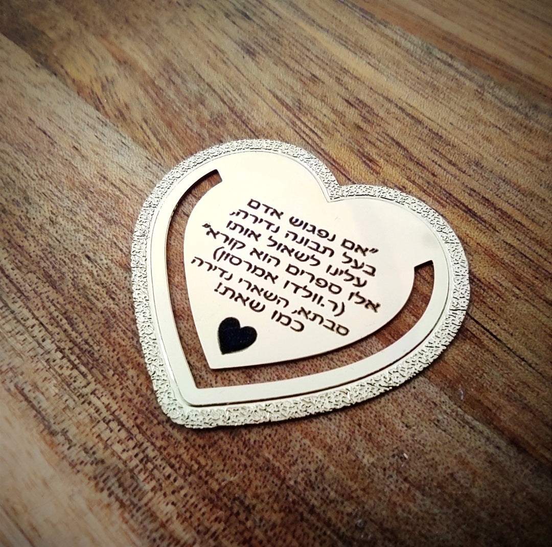 סימניה לב בעיצוב יחודי בשילוב ציפוי זהב טהור בחריטה אישית