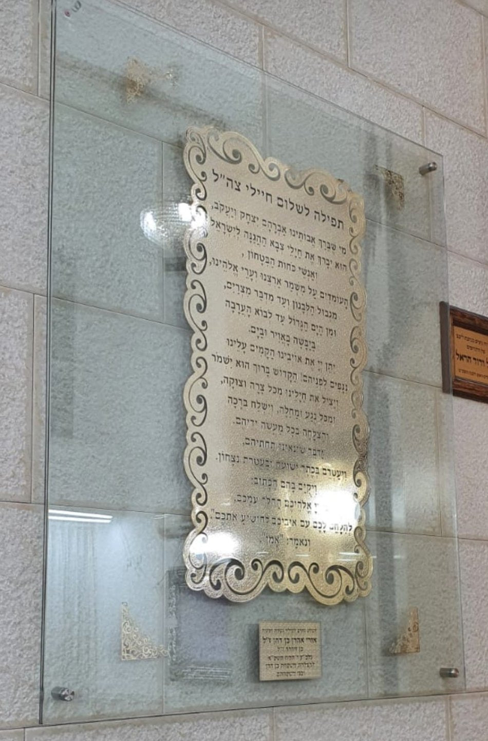 שלט לבית כנסת ברכה לחיילים בעיצוב קלאסי בשילוב פלאק זהב