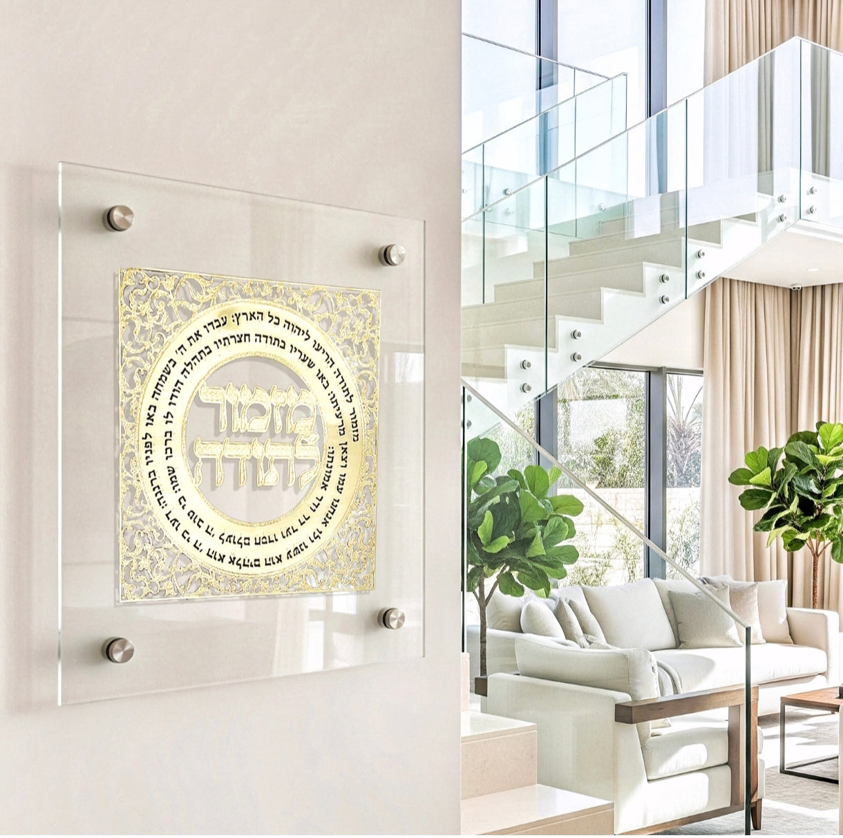 תמונה מזמור לתודה בעיצוב אקסלוסיבי בזהב על זכוכית