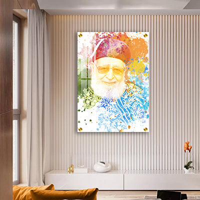 1519- ציור פופ ארט צבעוני של הרב עובדיה יוסף על קנבס או זכוכית מחוסמת