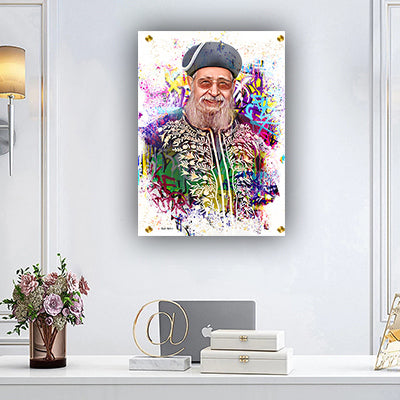 1594-ציור גרפיטי מודרני של הרב עובדיה יוסף מחייך על קנבס או זכוכית
