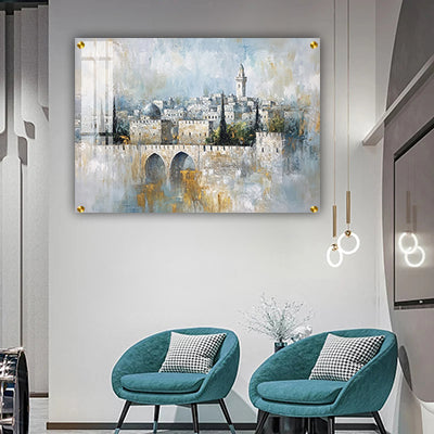 2023 - ציור אבסטרקט של חומות ירושלים על קנבס או זכוכית