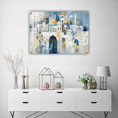 2072 - ציור אמנותי של ירושלים עם נגיעות זהב על קנבס או זכוכית