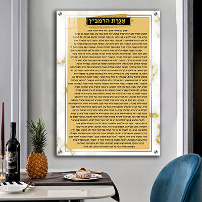 2387 - תמונה מעוצבת של אגרת הרמב ן על רקע דמוי שיש עם נגיעות זהב על זכוכית או קנבס