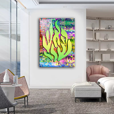 2575 – תמונה מעוצבת בסגנון פופ ארט צבעוני של “האש שלי " על קנבס או זכוכית