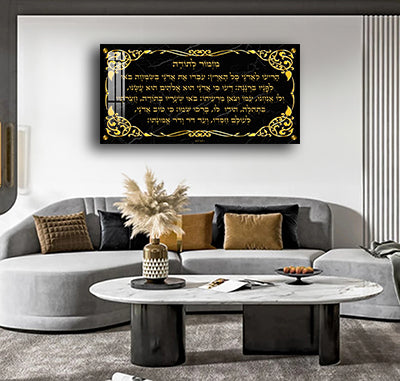 2619 - ברכת מזמור לתודה מלבנית בשחור וזהב על קנבס או זכוכית
