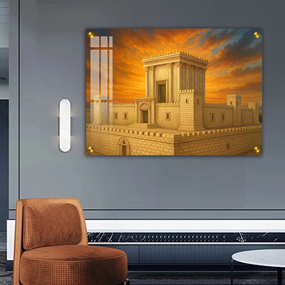 3015 - ציור של בית המקדש השלישי בשקיעה על קנבס או זכוכית