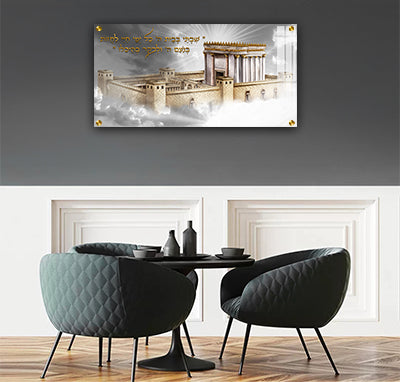 3123 - תמונה של בית המקדש עם כיתוב: "שִׁבְתִּי בְּבֵית יה' כָּל יְמֵי חַיַּי לַחֲזוֹת בְּנֹעַם ה'וּלְבַקֵּר בְּהֵיכָלוֹ"....על קנבס או זכוכית
