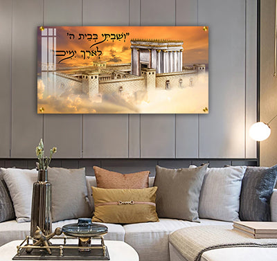 3135 - תמונה של בית המקדש בשקיעה עם כיתוב: "וְשַׁבְתִּי בְּבֵית ה’ לְאֹרֶךְ יָמִים"....על קנבס או זכוכית