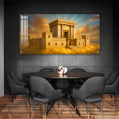3146 - תמונה פנורמית של בית המקדש בשקיעה על קנבס או זכוכית