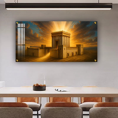 3147 - תמונה פנורמית של בית המקדש בשקיעה על קנבס או זכוכית