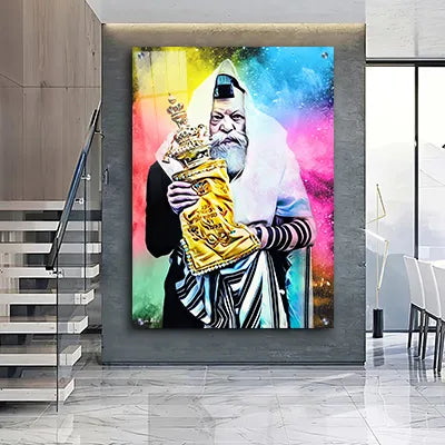 536 - ציור צבעוני ומודרני של הרבי מליובאוויטש מחזיק ספר תורה גדול להדפסה על זכוכית או קנבס