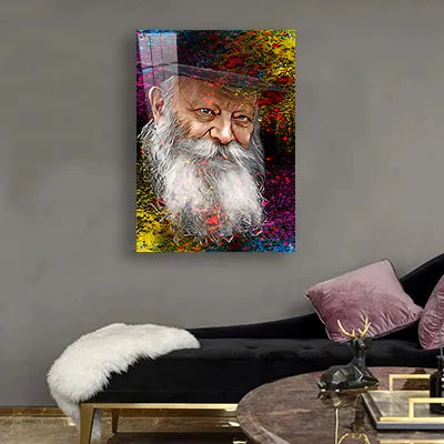582 - ציור מיוחד וצבעוני של הרבי מליובאוויטש על זכוכית או קנבס