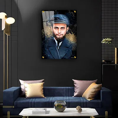 638 - ציור מיוחד של הרבי מליובאוויטש צעיר על קנבס או זכוכית