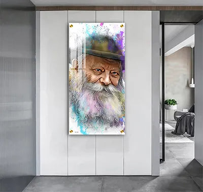 692 - ציור גרפיטי צבעוני של הרבי מליובאוויטש על קנבס או זכוכית מחוסמת